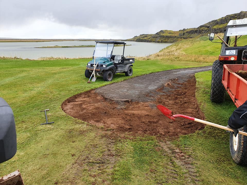 Auk þess hefur verið unnið mikið úti á velli í gerð göngustíga og uppsetningu á tveimur klósettum.